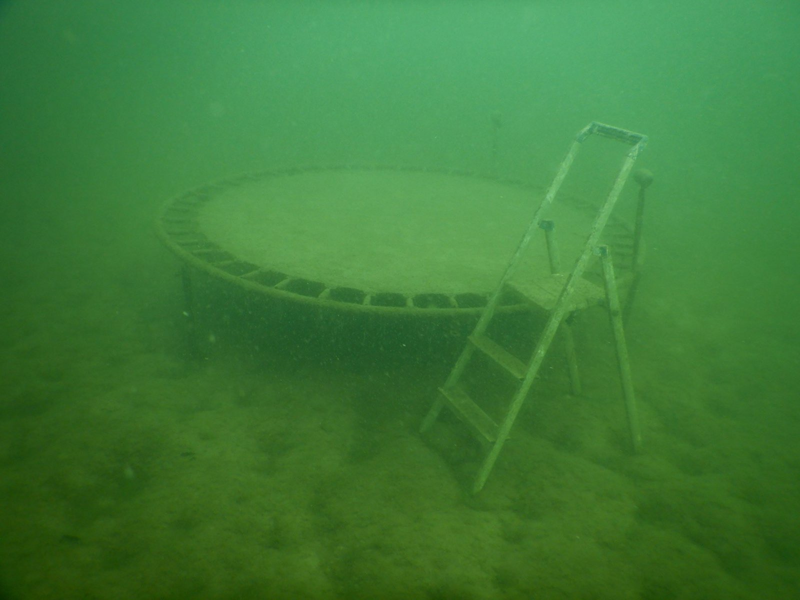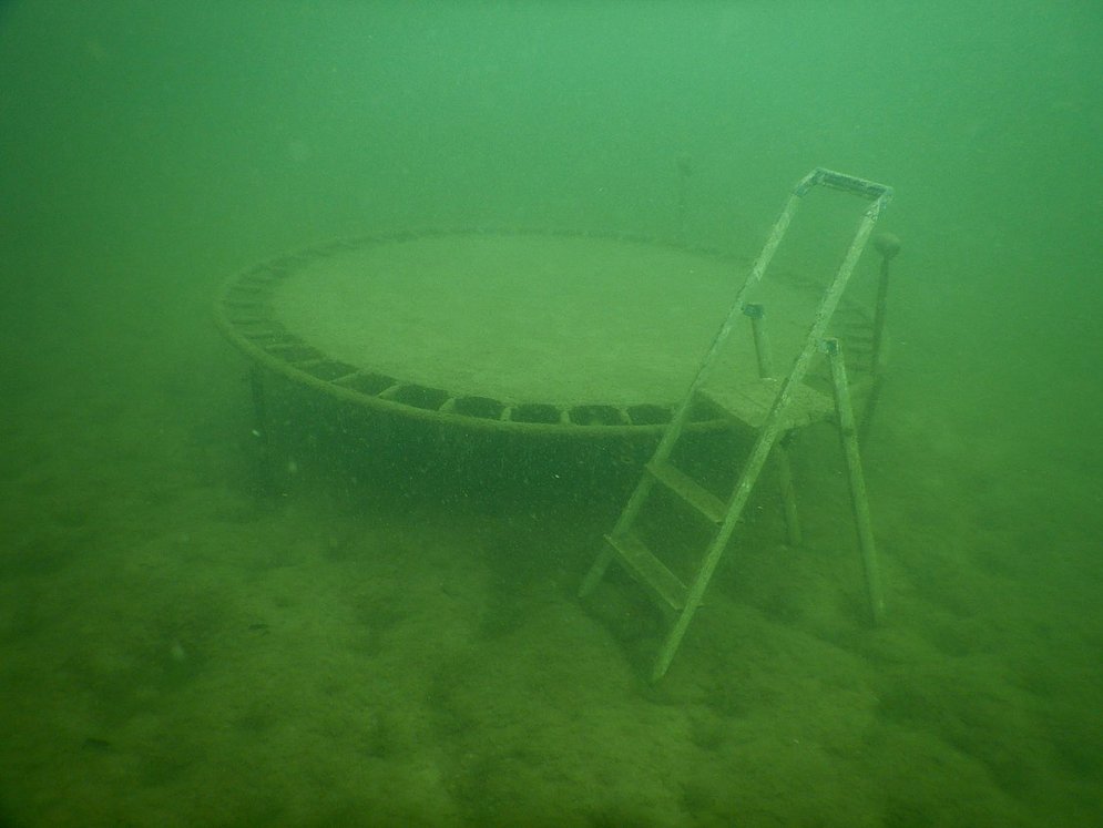 Zudem befindet sich im See ein Trampolin, das gezielt für Übungszwecke genutzt wird.