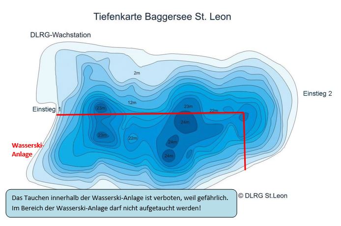 Mit einer Wasserfläche von rund 36 Hektar, einer Tiefe von bis zu 24 Metern und einer Länge von etwa 500 Metern bietet der See ideale Voraussetzungen für vielfältige Aktivitäten – vom Schwimmen und Tauchen bis hin zu Trainings- und Einsatzübungen der DLRG St. Leon.