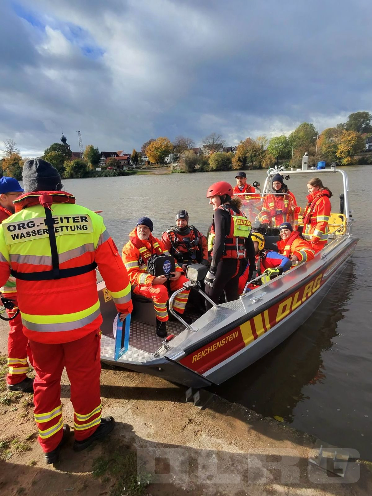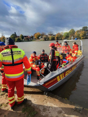 Auch die DLRG St. Leon war mit einem achtköpfigen Einsatzteam vor Ort und unterstützte die Übung sowohl mit einer Bootsgruppe als auch mit einer Tauchergruppe. Die Einsatztaucher aus St. Leon wurden mit der Suche nach vermissten Personen im Neckar beauftragt – eine Aufgabe, die sich aufgrund der starken Strömung und der schlechten Sichtverhältnisse unter Wasser als besonders anspruchsvoll erwies. Trotz der schwierigen Bedingungen arbeiteten die Einsatzkräfte konzentriert und harmonisch zusammen. Durch die enge Abstimmung zwischen der Boots- und der Tauchergruppe konnten die Suchabschnitte systematisch abgearbeitet und die Übungsziele erfolgreich erreicht werden.