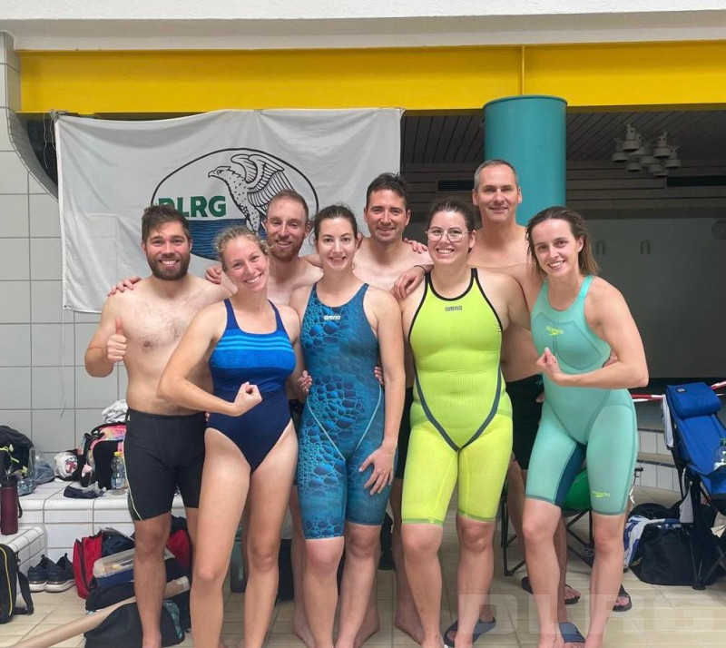 Mit großem Engagement und Teamgeist nahm die DLRG St. Leon an den 27. Baden-Württembergischen Seniorenmeisterschaften im Rettungsschwimmen (BaWü Masters) teil. Die Veranstaltung, die in Weingarten (Baden) ausgetragen wurde, brachte die besten Rettungsschwimmerinnen und -schwimmer des Landes zusammen. Im Einzelwettbewerb zeigte Sophia Heilig eine starke Leistung und sicherte sich in der Altersklasse 25 weiblich (AK 25 w) den 2. Platz. Auch Jens Fischer startete in der Altersklasse 35 männlich (AK 35 m) und erreichte den 4. Platz, nur knapp hinter den Medaillenrängen. Am Nachmittag standen die Mannschaftswettbewerbe an, bei der wir in der Altersklasse 140 männlich mit Alexander Schell, Gregor Holz, Jens Fischer und Nico Keller an den Start gingen. Das Team zeigte eine geschlossene Mannschaftsleistung und bewies großen Kampfgeist bis zum letzten Meter der Bahn. Bei den Damen trat die Mannschaft AK 80 weiblich mit Barbara Becker, Christin Ittensohn, Elisabeth Barar und Sophia Heilig an. Die vier Schwimmerinnen überzeugten durch perfekte Abstimmung, Teamspirit und Freude am Wettkampf. Unser Mannschaften erreichten beide den 2. Platz und sind somit Baden-Württembergische Vizemister und haben sich für die deutschen Meisterschaften qualifiziert.