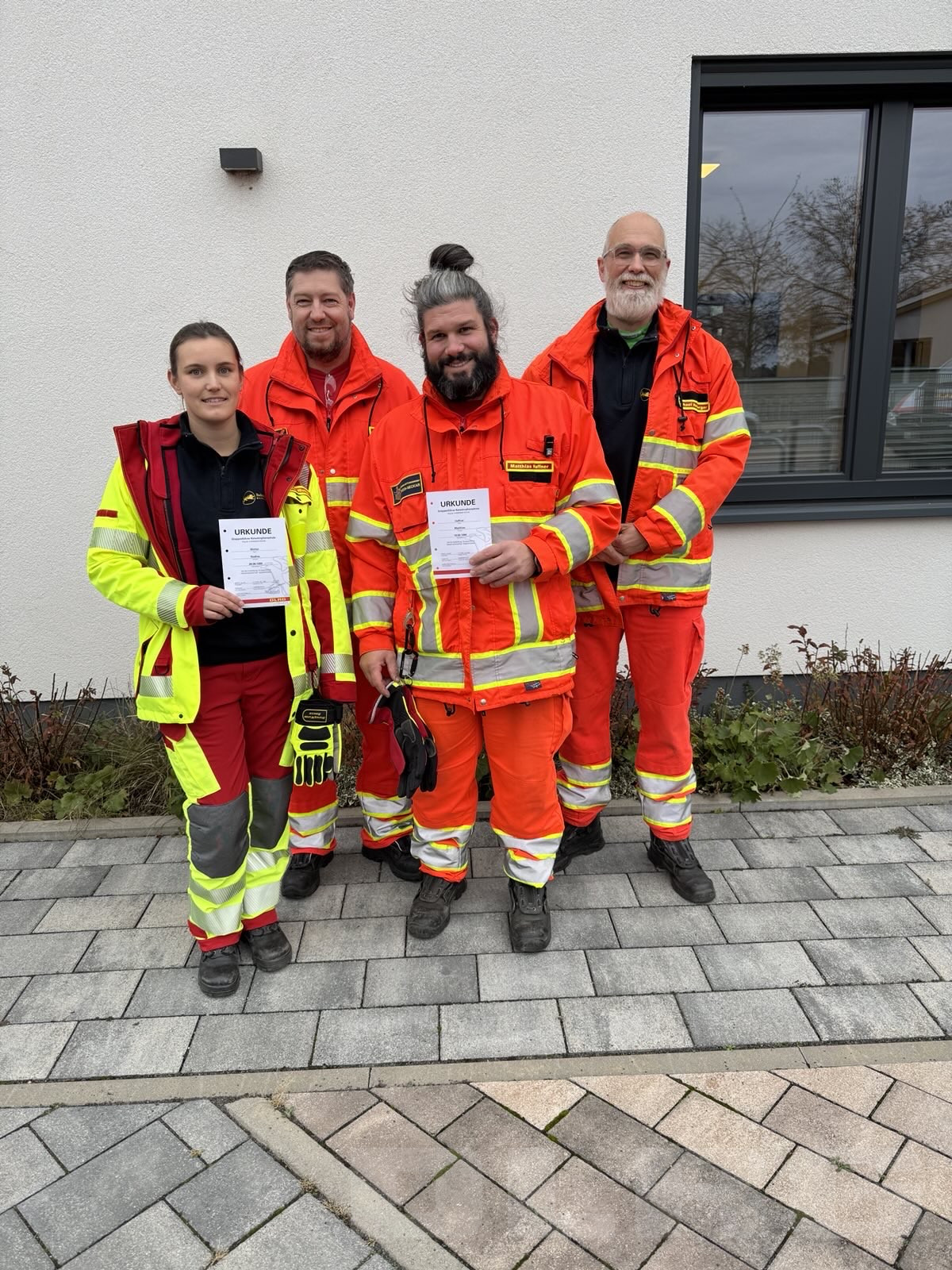Wir gratulieren Nadine, Matthias, Andreas und Michael herzlich zum bestandenen Gruppenführer-Lehrgang und freuen uns darauf, dass sie ihre neuen Qualifikationen künftig in unserem Einsatzteam einbringen können.